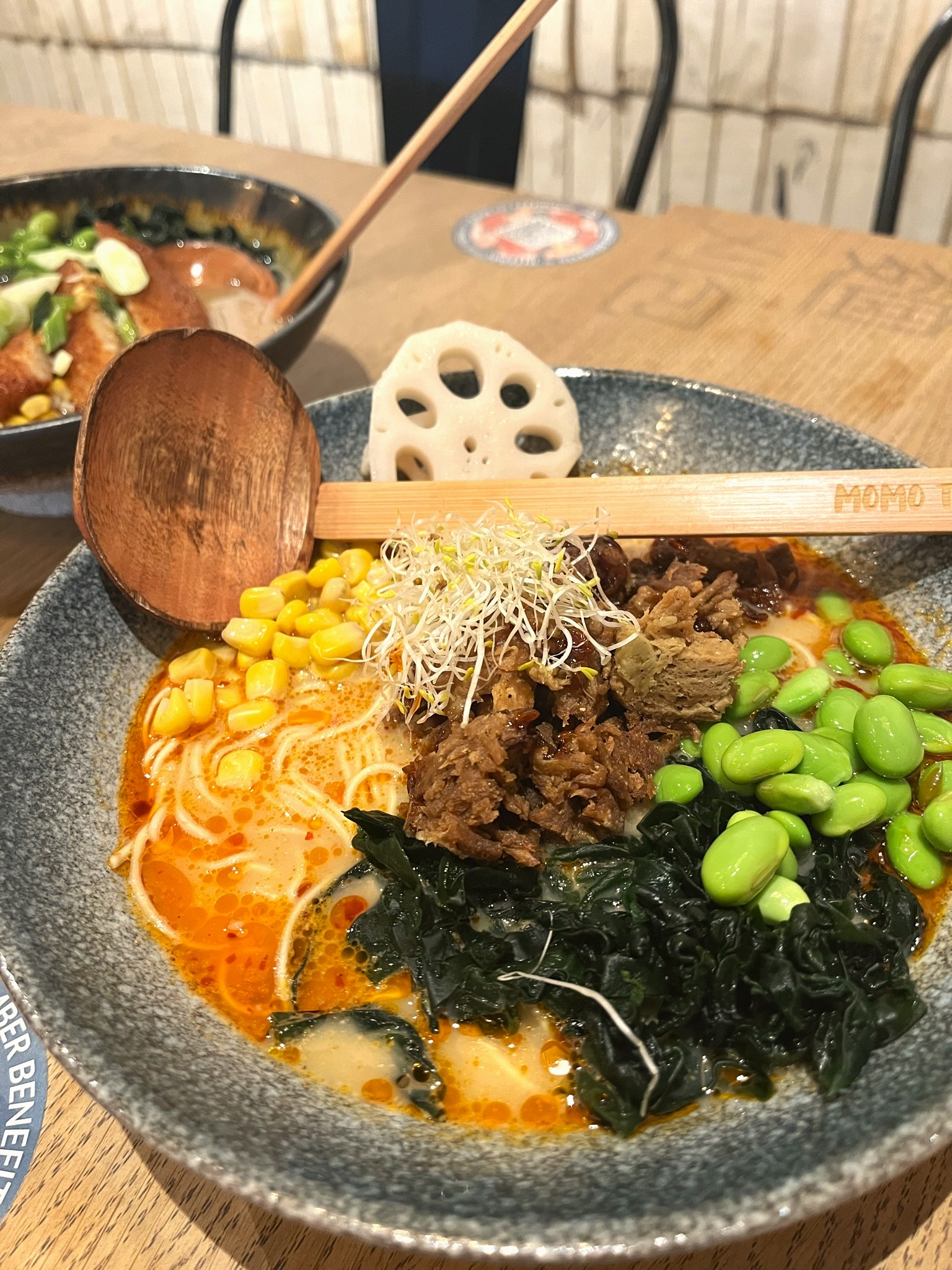 Note: mention vegan when you order, they may add egg on the veggie bowls. Momotoko chain unfortunately closed down in 2025. Another spot (Ramen Ichiraku) opened up in Kamppi shopping centre food court in its place, which we haven’t checked out yet.